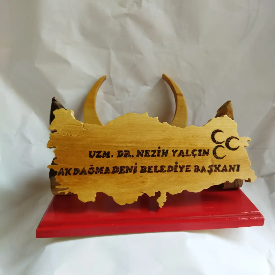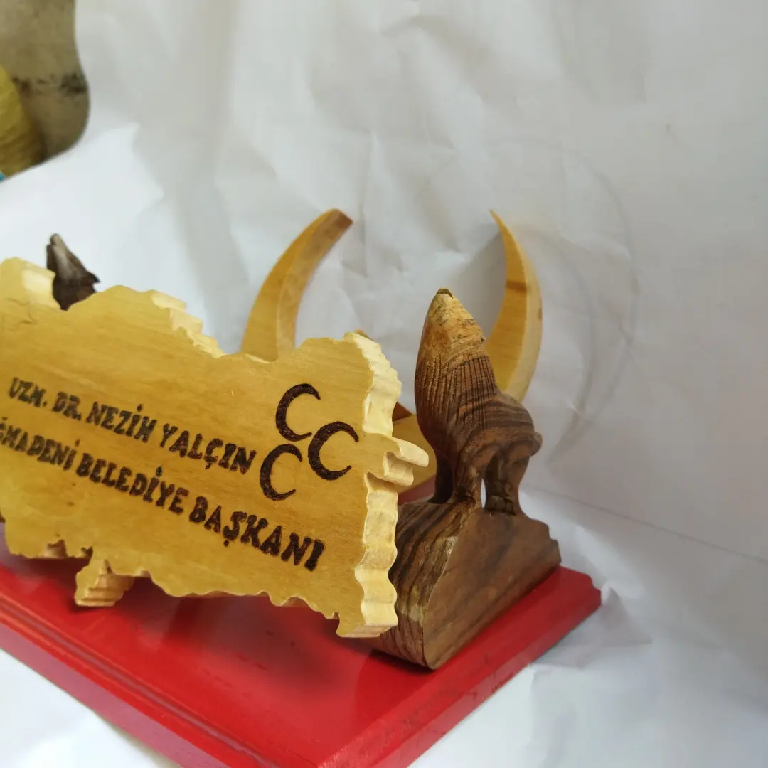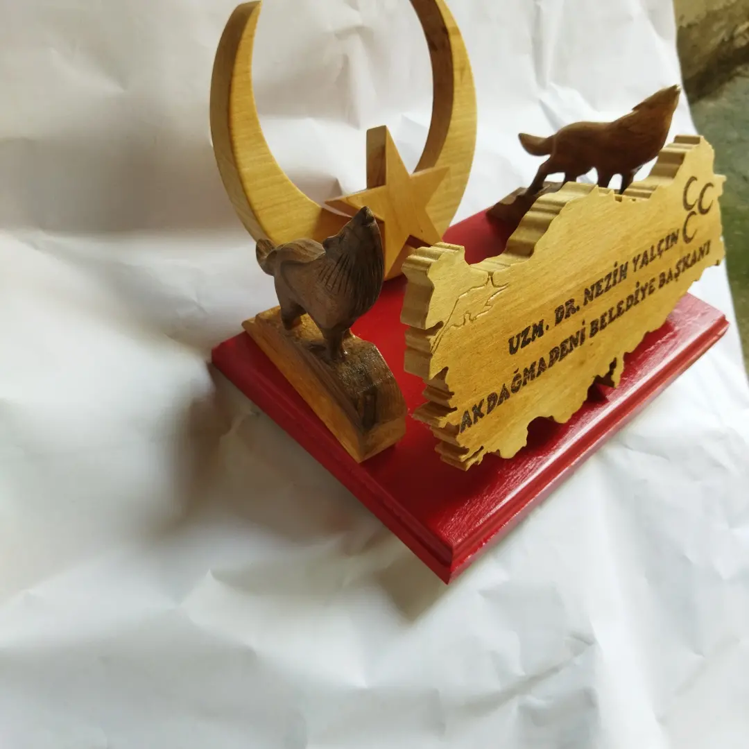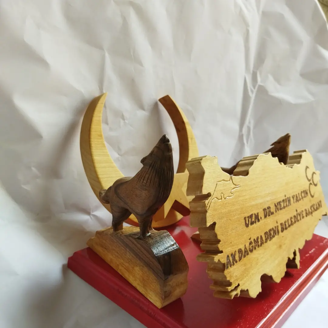 TÜRK TEMALI BOZKURTLU AHŞAP İSİMLİK